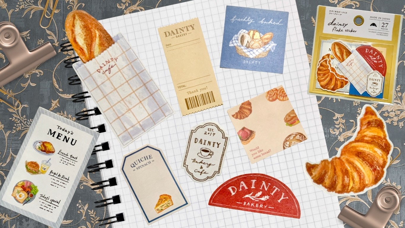 <ブレッド柄>は書き込みできるデザインもあり。パン屋さんやカフェに行った日の日記に貼りたい!! ドールサイズのメニュー表としても使えるかも……という妄想も膨らみます。