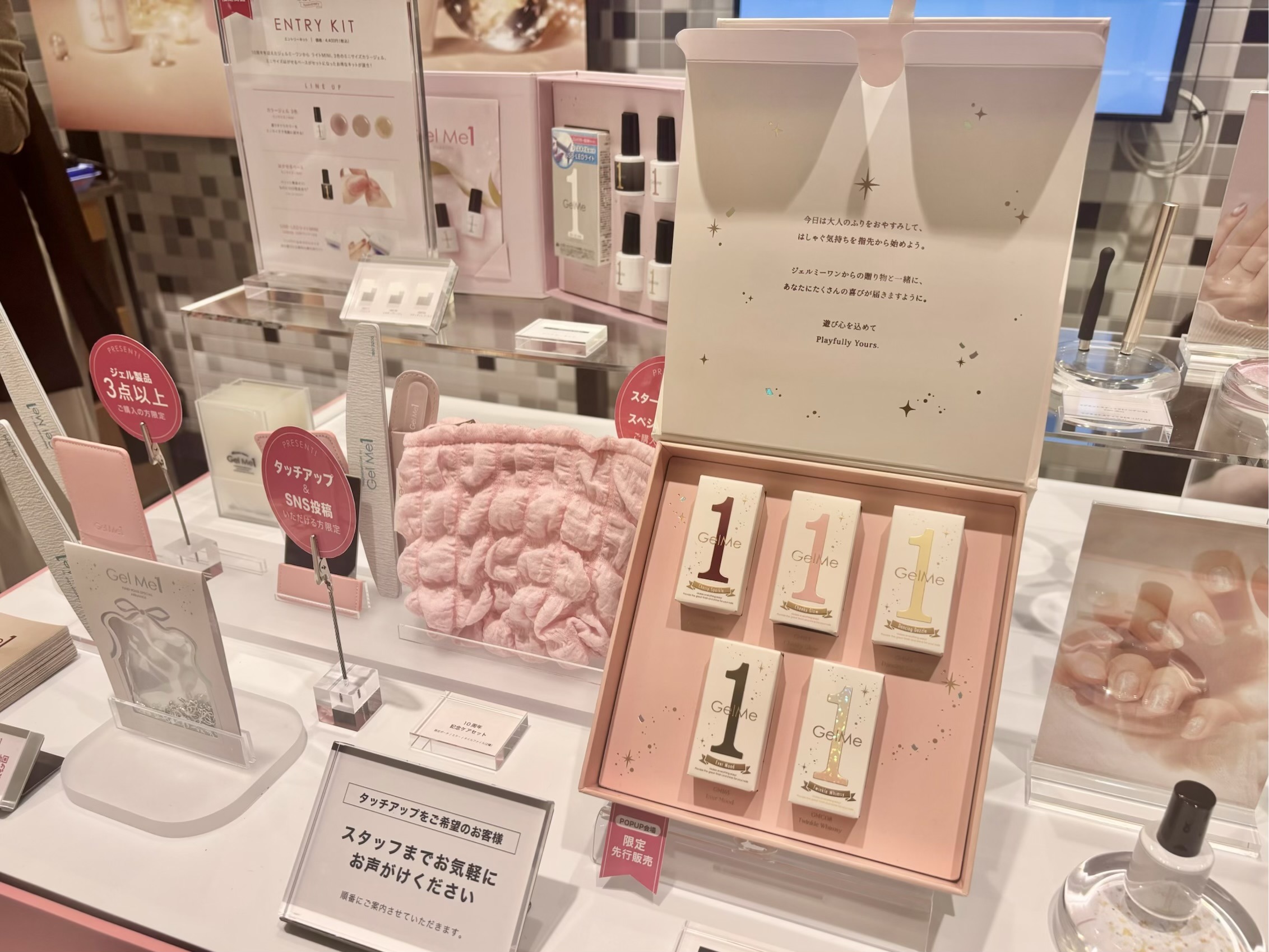 「Gel Me1(ジェルミーワン)」の発売10周年を記念した POPUPでは、公式オンライン限定で発売中の「冬限定5色セットスペシャルBOX」(7700円)も紹介されていました。