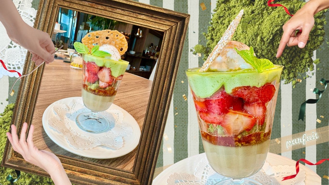 さらに、1000円の追加料金で「ほうじ茶プリンと苺のコンフィチュール 煎茶エスプーマのパフェ」も楽しめます。